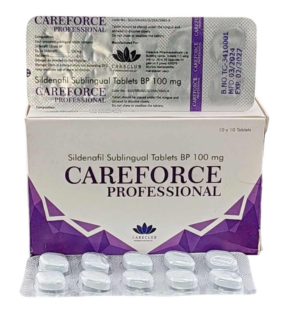 A Careforce Professional hatóanyaga a sildenafil, amely segíti a pénisz simaizmainak ellazulását, fokozza a véráramlást a barlangos testekben, és erősebb erekciót eredményez szexuális ingerlés hatására. A sildenafil az egyik legismertebb és leghatékonyabb PDE-5 gátló, amely gyors és megbízható hatást biztosít. A Careforce Professional különlegessége, hogy hatóanyaga fokozatosan szabadul fel a szervezetben, így a hatás hosszabb ideig tart, akár 4–6 órán keresztül is.