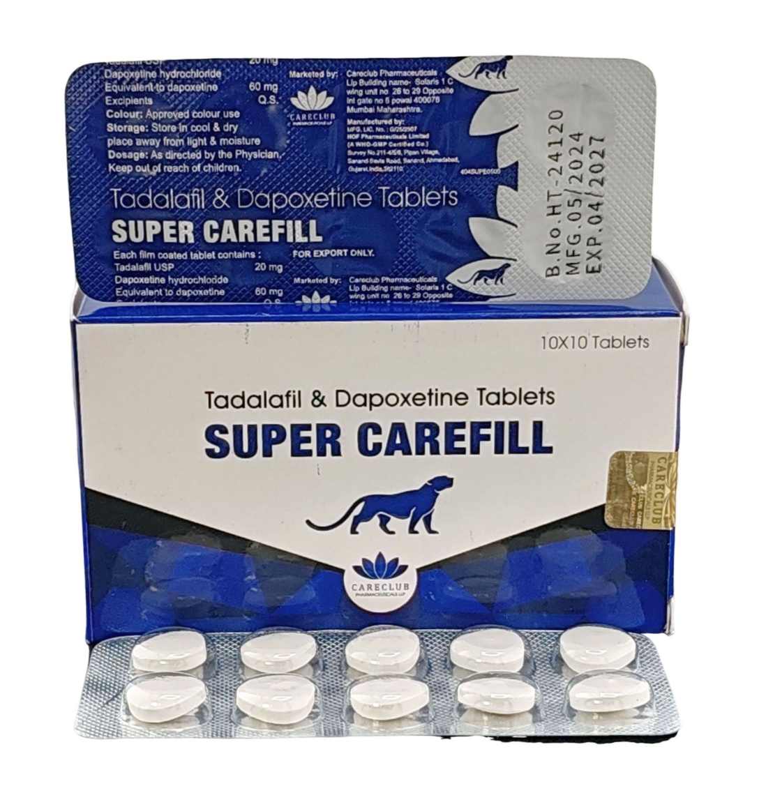 A Super Carefill hatóanyagai – Tadalafil és Dapoxetine – kombinációja kiemelkedő hatékonyságot biztosít. A Tadalafil segíti a pénisz vérellátottságának fokozását, így az erekció erősebbé és tartósabbá válik. A Dapoxetine pedig segít késleltetni az ejakulációt, így hosszabb ideig élvezheti az intim pillanatokat. A két hatóanyag kombinációja nemcsak az erekció megszilárdításában segít, hanem hozzájárul a szexuális élmény meghosszabbításához is.